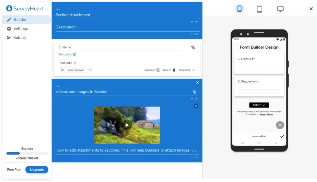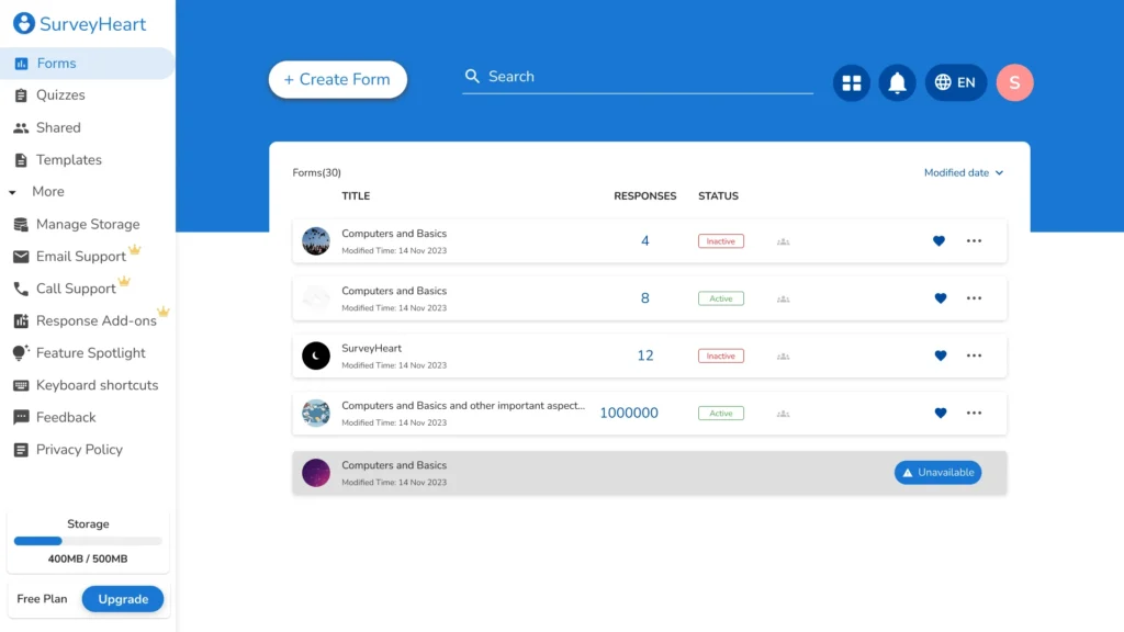 SurveyHeart is a powerful SaaS-based platform that enables users to easily create online forms, quizzes, and surveys across Android, iOS, and Web. Designed for individuals, businesses, and educators, SurveyHeart simplifies data collection, feedback management, and engagement through an intuitive, no-code interface.